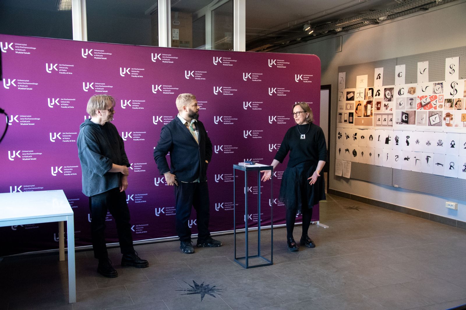 Prezentowane realizacje pochodzą ze wszystkich kierunków prowadzonych w Instytucie Sztuk Wizualnych Wydziału Sztuki UJK: Sztuk Plastycznych, Grafiki, Designu, Designu Społecznego oraz Sztuk Transmedialnych. To spotkanie wielu metod i perspektyw: prac powstających w ciszy pracowni i tych, które wychodzą w przestrzeń publiczną; dzieł skoncentrowanych na materii oraz projektów opartych na badaniu, analizie i prototypowaniu; obrazów i obiektów, które operują metaforą, oraz rozwiązań projektowych, które mierzą się z konkretnymi potrzebami i realnymi kontekstami. Wspólnym mianownikiem jest tu proces, widoczny w decyzjach, korektach, poszukiwaniach i odwadze testowania.