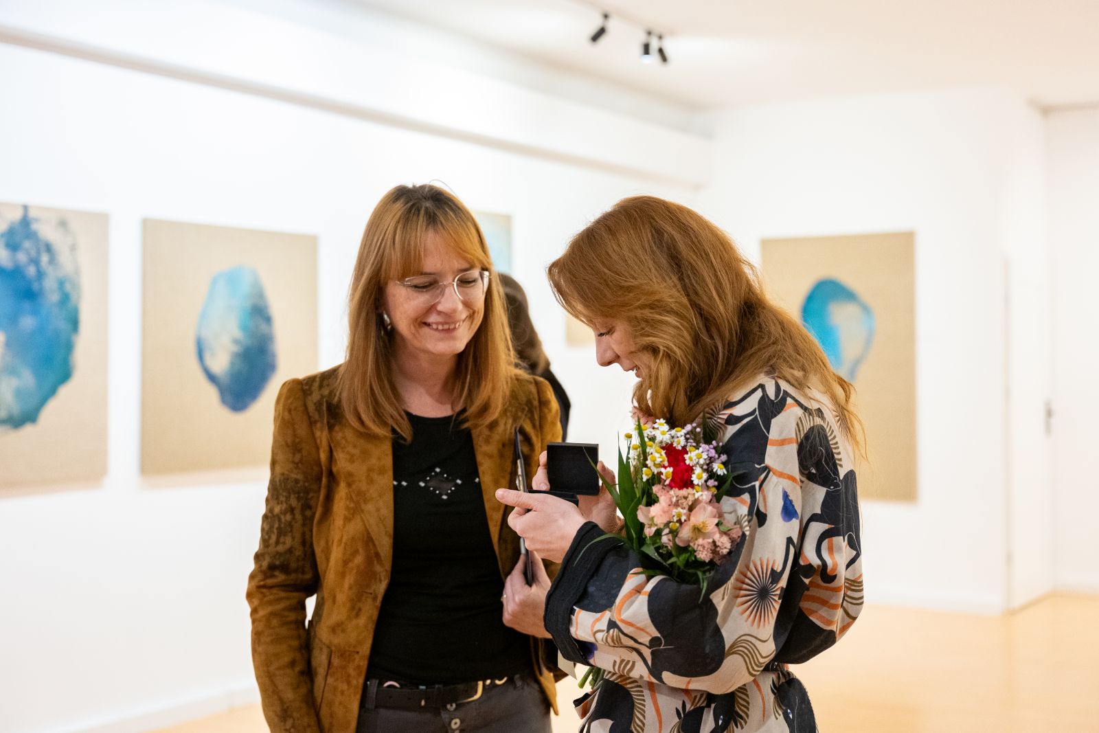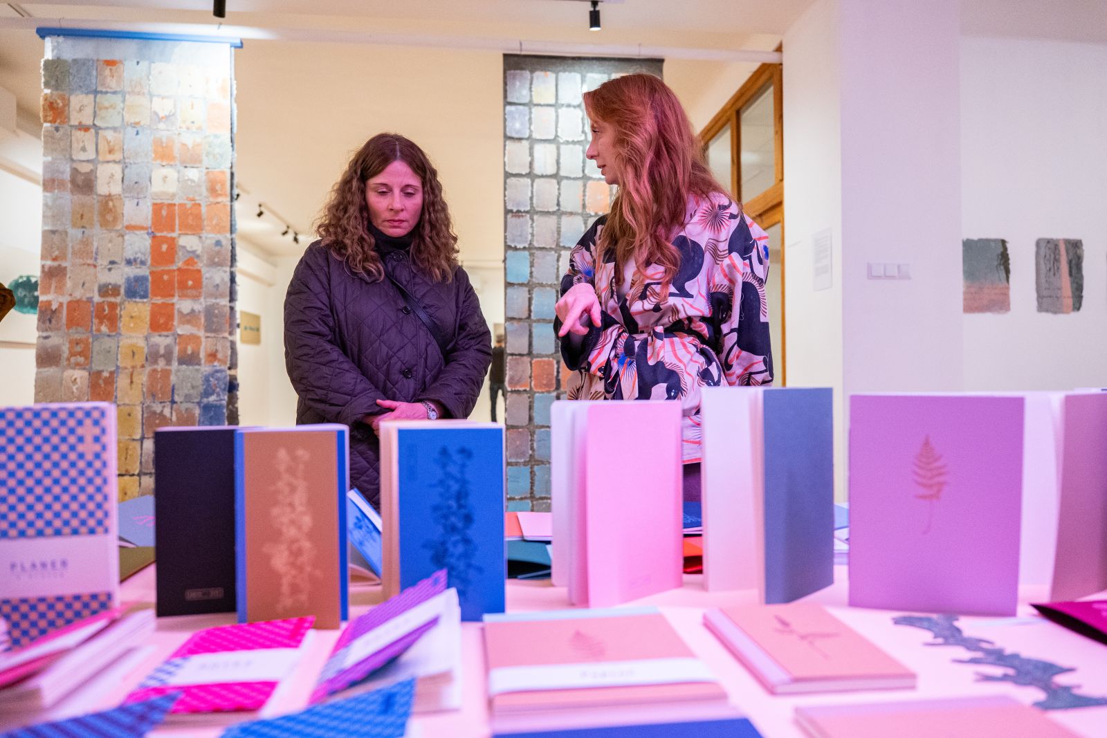 Następnie karty ulegają kolejnym procesom, m.in. zostają nadrukowane za pomocą wcześniej powstałych matryc drukarskich. Odnajdziemy tam m.in. sylwetki kobiece, abstrakcyjne fragmenty inspirowane strukturami przekroju agatów. Szczególnie bliska jest jej matryca stworzona na podstawie ręcznego zapisu jednego z pierwszych wykładów, w których uczestniczyła jako studentka. Wykład ten definiował podstawowe terminy estetyczne takie jak np. piękno. Ten naturalny organiczny kształt pisma autorki stał się jej osobistym śladem, w formie matrycy, która latami służy artystce w projektach zarówno użytkowych, jak i artystycznych.