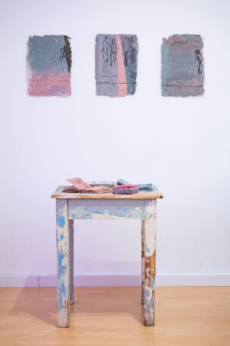 Ekspozycja wystawy ukaże warsztat papierniczo-drukarski artystki. Ale przede wszystkim zaprezentuje znaczenie poszczególnych elementów, które autorka wykorzystuje w swojej twórczości. Owo znaczenie związane jest z wymiarami: 13 x 18