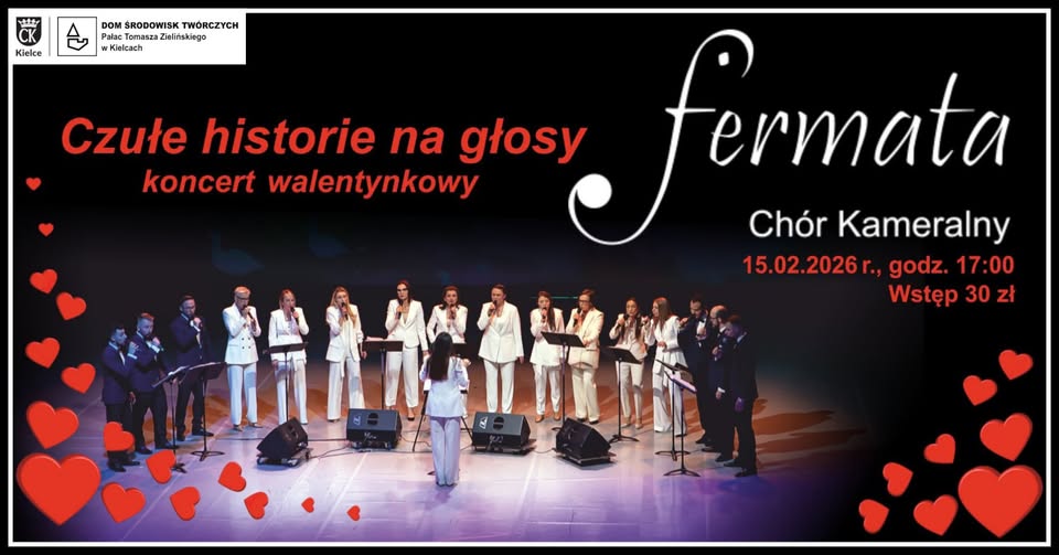 10 lutego 2026 Sławomir SkulskiZapraszamy na muzyczną opowieść o miłości w jej wielu odsłonach — od namiętności i czułych wyznań, przez nostalgię i refleksję, aż po lekkość, humor i ludową radość. Podczas koncertu walentynkowego Chóru Kameralnego Fermata „Czułe historie na głosy” usłyszą Państwo muzyczną opowieść o miłości w jej wielu odsłonach — od namiętności i czułych wyznań, przez nostalgię i refleksję, aż po lekkość, humor i ludową radość. Chór a cappella sięgnie zarówno po ponadczasowe przeboje i filmowe motywy, jak i klasykę polskiej piosenki. Nie zabraknie także subtelnego żartu i poetyckiej ironii, a całość dopełni żywiołowy set ludowy, w którym tradycyjne melodie zabrzmią w chóralnych aranżacjach. To wieczór, w którym różne style i epoki spotykają się we wspólnej harmonii głosów, tworząc barwny obraz uczuć bliskich każdemu z nas.