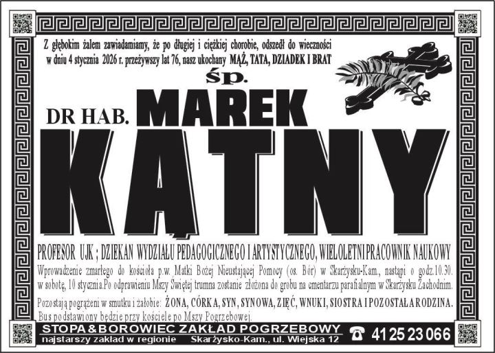 kondolencje Rodzinie zmarłego byłego Dziekana Wydziału Pedagogicznego i Artystycznego