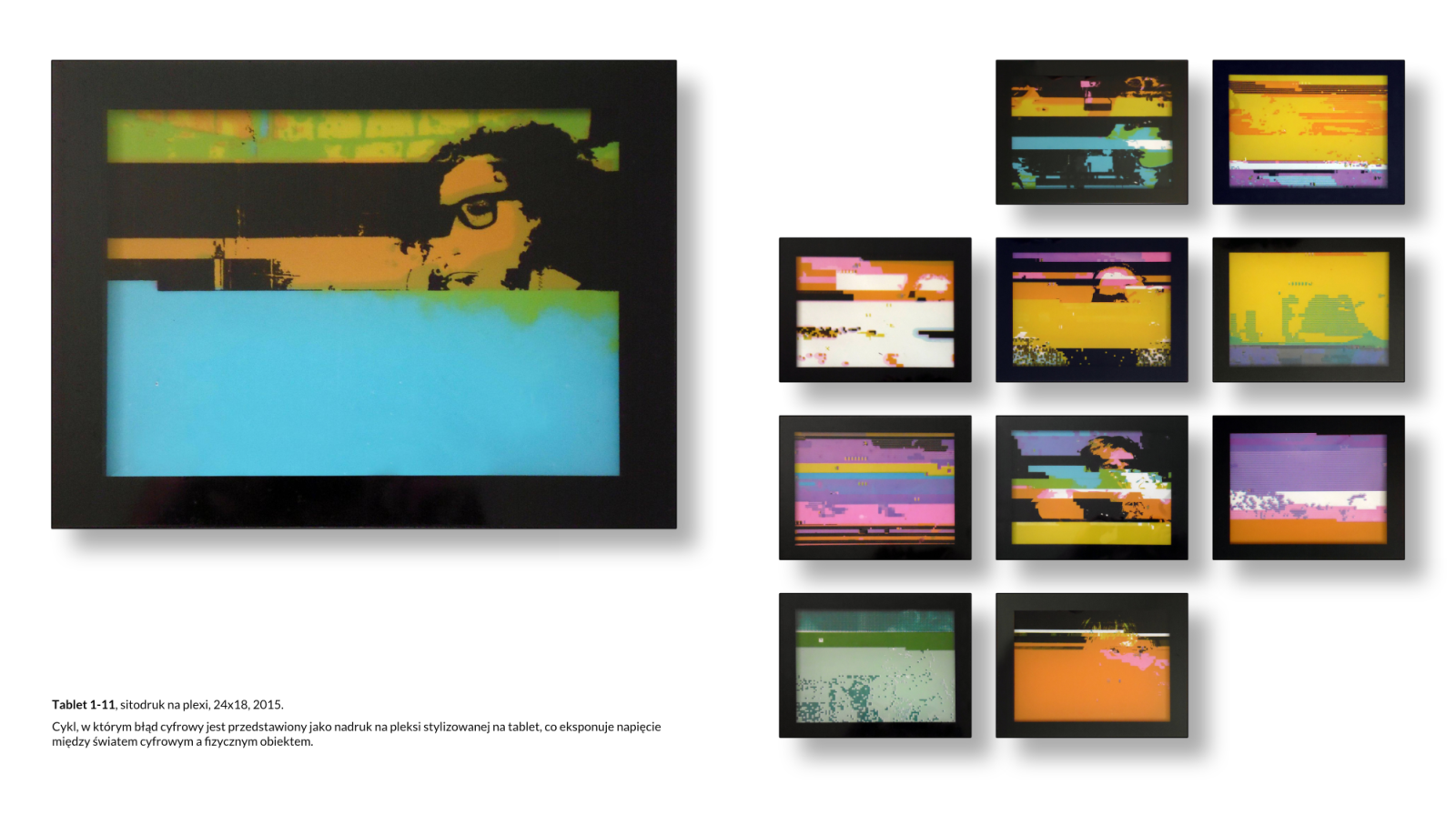 Motyw błędu stanowi istotny punkt odniesienia w jego twórczości – traktuje go nie jako niedoskonałość, ale jako wartość estetyczną i konceptualną. W swoich pracach świadomie wykorzystuje glitch, cyfrowe deformacje i zakłócenia, które przenosi na płótno lub integruje z grafiką i animacją. Eksperymentując z tym, co przypadkowe i nieprzewidywalne, kwestionuje granice między tradycyjnymi i cyfrowymi środkami wyrazu.
