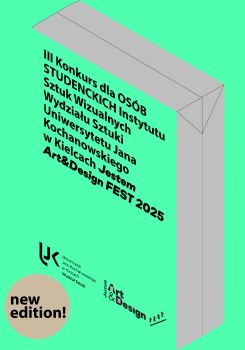 Zapraszamy osoby studenckie Instytutu Sztuk Wizualnych Wy- działu Sztuki do udziału w III edycji Konkursu „Jestem Art & Design FEST”, którego celem jest promocja i konfrontacja wyróż- niających się artystycznie i projektowo postaw twórczych. Wernisaż wystawy pokonkursowej odbędzie się 12 grudnia 2025 roku w Galeriach CSW ArtLAB Instytutu Sztuk Wizualnych. Najlepsze z zakwalifikowanych prac zostaną uhonorowane nagrodami ufundowanymi przez instytucje kultury, organizacje i firmy
