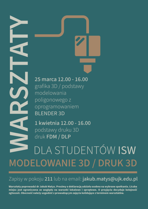 Wydział Sztuki - Zapraszamy na warsztaty dla studentów ISW MODELOWANIE 3D / DRUK 3D